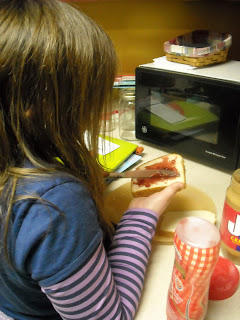hair". So I had to snap a picture really quick. This one is not very good but I went to take another one and he was already pulling the rubber bands out so this will have to do. I will have other dinners with the girls (and will still of course take pictures tonight) but Kyle will probably never allow Kaitlyn to do this to him again. Just one reason why I love this project, funny everyday stuff! Enjoy laughing at my son and my realization that I should probably go get his hair cut soon!